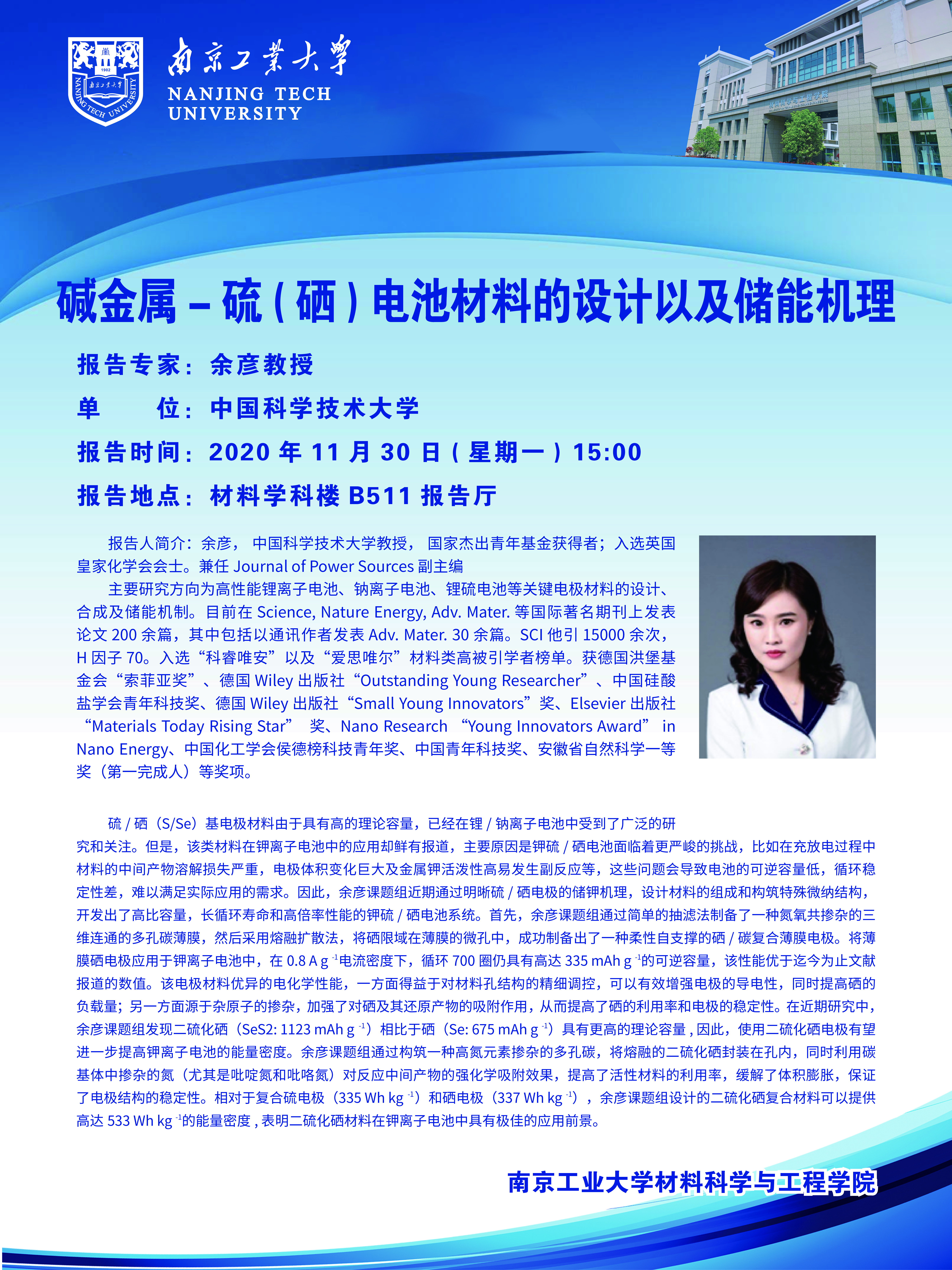 【学术报告】碱金属-硫(硒)电池材料的设计以及储能机理