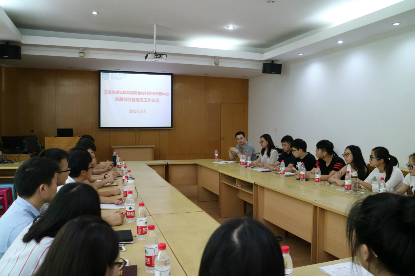 文:苏 云 图:姚立春 编辑/上传:苏 云 审核:陆春华 7月4日下午,江苏先进无机功能复合材料协同创新中心(以下简称“中心”)在东南楼320组织了首届研究生科创管理员工作汇报交流活动。中心副主任陆春华教授、分团委书记丁楠老师、研究生辅导员杨梦飞老师参加此次活动。