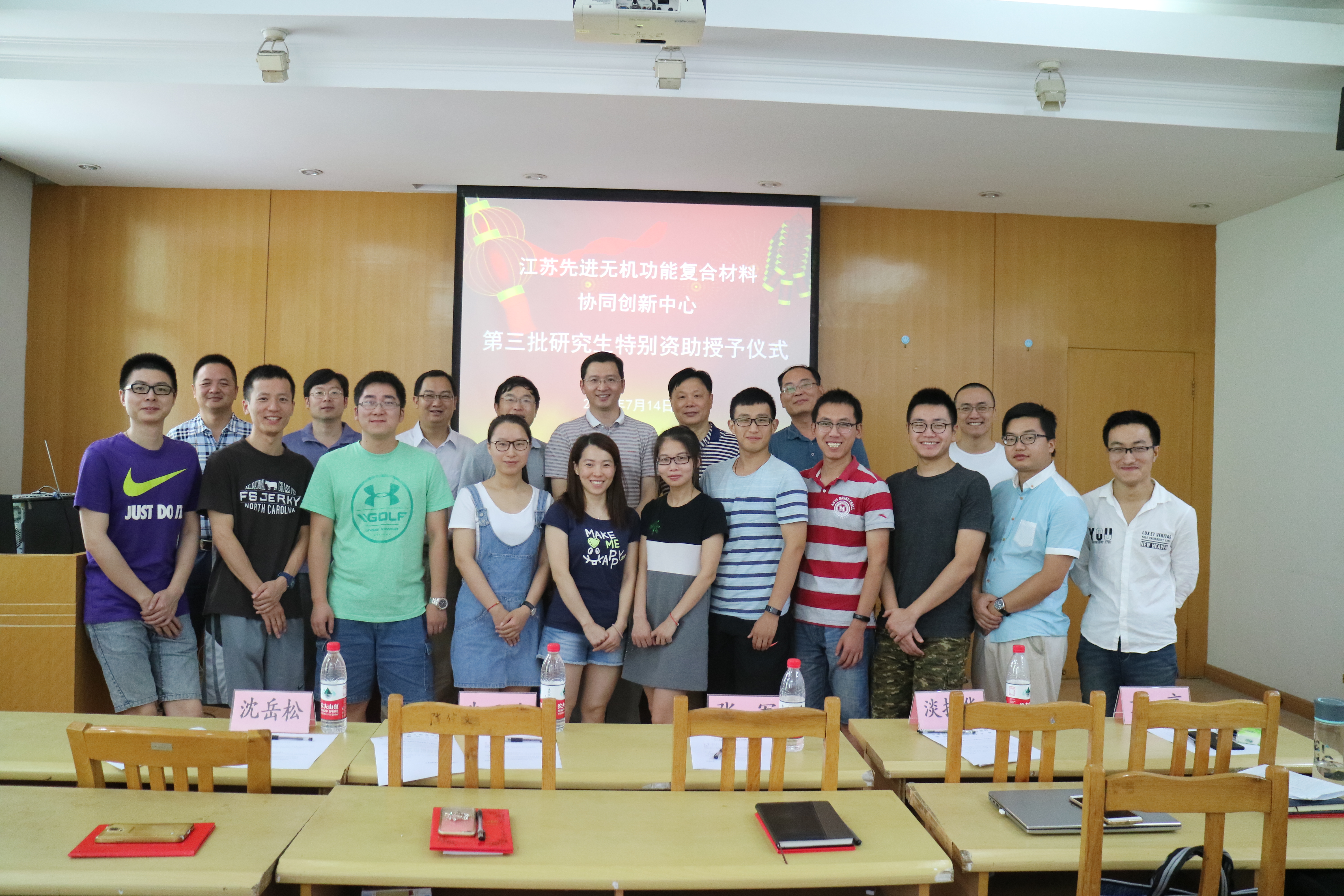 文:苏云 图:姚立春 编辑/上传:苏云 审核:陆春华 7月14日上午,江苏先进无机功能复合材料协同创新中心(以下简称“中心”)于东南楼320举行了第三批研究生特别资助授予活动。best365足球官网副经理王庭慰教授、best365足球官网副经理兼中心副主任陆春华教授、中心PI团队骨干代表、获资助研究生指导教师代表以及30余名获资助研究生出席了活动。授予活动由中心副主任崔升教授主持。 best365足球官网副经理王庭慰教授宣读了《关于确定第三批研究生特别资助名单的通知》。经研究生个人申请,专家小组评审和中心研究决定,此次共资助研究生38人,其中黄亨明等8人为博士A类资助;刘泉等8人为博士B类资助;仇旭等10人为硕士A类资助;张志远等12人为硕士B类资助。 博士A类资助获得者黄亨明博士代表全体受资助同学做了简短的发言。他与大家分享了对“协同”与“创新”的理解,鼓励大家善于合作,积极协同创新,要以更加饱满的热情投入到学习和研究工作中去,为中心和公司的发展,特别是“一流学科”建设尽一份力。 最后,中心副主任、best365足球官网副经理陆春华教授从三个方面做了总结。第一,要求获资助的研究生努力夯实基础,建立学术自信,多“走出去”提升国际视野;第二,希望受资助的同学学习前两批受特别资助的学长们,再接再厉,承前启后,积极高质量地完成各项指标任务;第三,陆经理借“协同”、“创新”寓意,希望指导教师们能更好地指导和帮助获资助的研究生开展高水平研究,努力、积极推进材料学科人才培养,科研成果获取等各项工作。