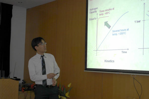 报告中,邵教授告诫大家:“做科研要秉承着一颗诚实的心,真实的数据更能打动评审人”。邵怀宇博士的精彩学术报告以及其做科研的态度,赢得了在场师生的热烈掌声。报告最后,在场师生就报告的内容与邵怀宇博士进行了互动交流,现场气氛活跃。此次报告拓宽了师生的知识面,师生们对“镁基储氢材料的应用开发”有了更深入的认识。