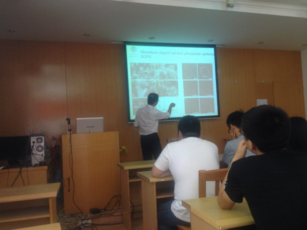2016年6月7日上午,夏教授在东南楼320室为广大师生作了题为“Ceramics in biomedicine”的学术报告。报告会由崔升教授主持,他简单介绍了夏炜副教授的主要工作经历及学术成就,并对其到来表示热烈欢迎。