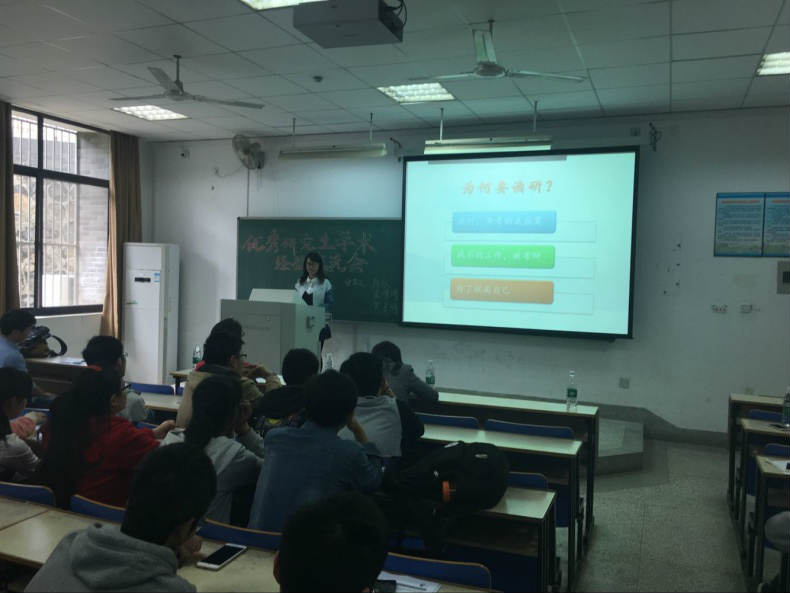 交流会伊始,主持人首先介绍了陆依、黄亨明以及金诗琦等三位受邀的优秀研究生,三位受邀的优秀研究生依次和参加的本科生分享了自己的学术经验和研究历程。陆依博士为同学们分析了将要面临的读研和工作的选择问题,给同学们展望了研究生的美好生活,给同学们选择读研树立了信心;金诗琦硕士为同学们讲述了自己对研究生生涯的理解,怎样去追求自己想要的研究生生活,建议同学们有独立思考的能力,敢于承担责任、对自己负责;黄亨明博士则为大家展示了从班级到挚友、从家人到老师、从爱好到科研的点点滴滴,精彩的老员工活赢得了在场同学的强烈共鸣,同时其建议同学们珍惜平时,丰富自己的阅历,努力使自己成为一个有故事的人。