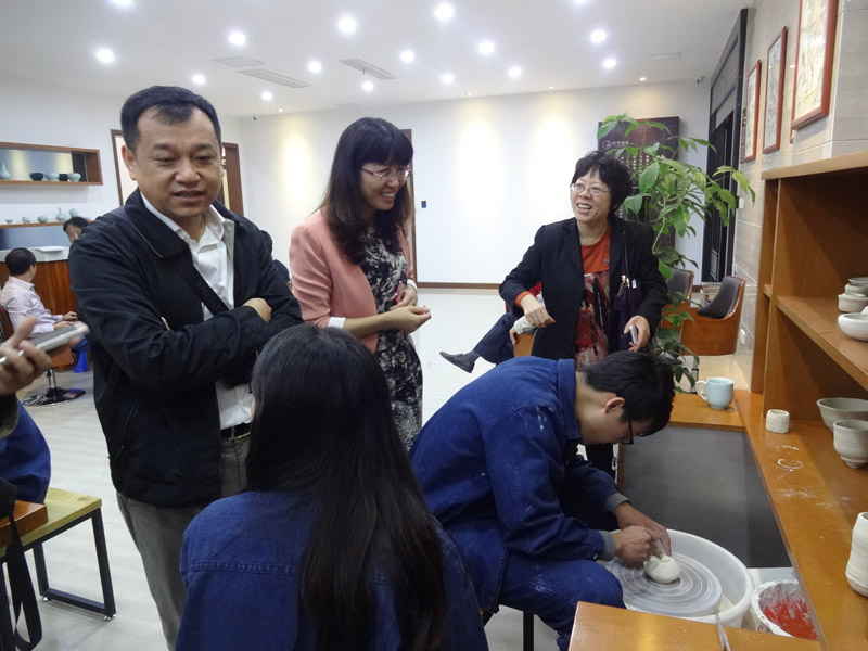 当日上午,best365足球官网经理沈晓冬教授、副经理胡秀兰教授、无机材料系主任沈春英教授、金江副教授应邀出席了谈青窑艺·宜兴青瓷艺术研究院开业仪式,沈春英教授被评为研究院研究员,并参观了研究院作品展厅,详细了解了与紫砂等并称宜兴陶瓷“五朵金花”之一的青瓷艺术。随后,沈经理等还看望了在研究院进行工程实践的12级卓越工程师班同学及指导教师。