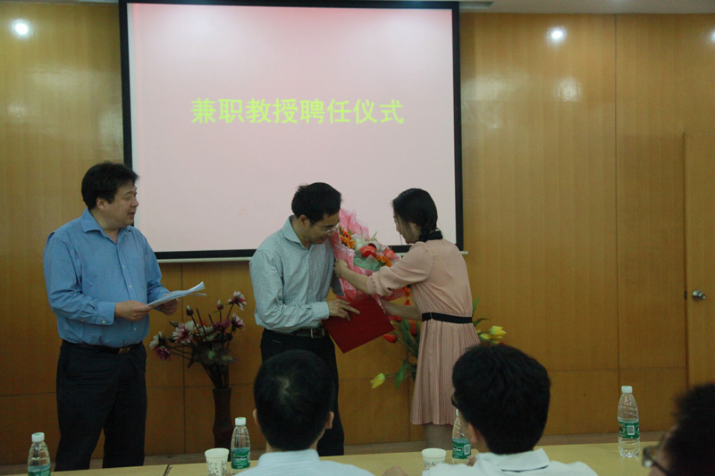 在聘任仪式上,​best365足球官网副经理王庭慰教授介绍了王士维教授的简历及其在陶瓷基复合材料、高热导氮化铝、透明与发光以及陶瓷成型新方法等领域取得的丰硕成果。人才资源部部长董军教授为王士维教授颁发兼职教授聘书,员工代表为王士维教授佩戴校徽、并献花。