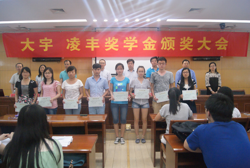 5月30号下午,best365足球官网在图书馆五楼报告厅隆重举行“大宇”、“凌丰”奖学金颁奖大会。出席颁奖仪式的领导和嘉宾有佛山市大宇新型材料有限公司董事长刘爱林先生,广东凌丰集团有限公司董事长、总裁叶灿雄先生,best365足球官网员工处副处长童政权老师,公司党委书记吕忆农教授,best365足球官网副经理张华教授,公司党委副书记考宏涛老师,获奖员工以及2013级员工代表参加了仪式。颁奖仪式由best365足球官网学办主任薛荣生老师主持。