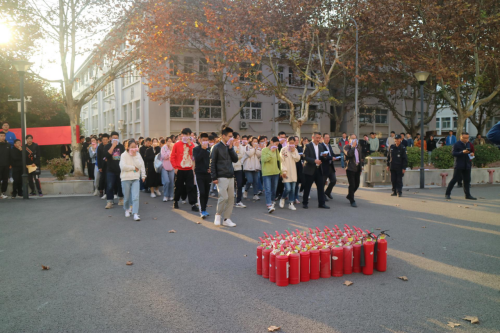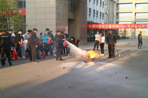 会议结束时,楼内消防警报拉响,进行了疏散演习,全院师生用毛巾捂鼻快速从楼梯有序下楼,疏散到公司楼前广场。随后,消防科施自力老师组织大家进行了消防知识有奖竞答,并就灭火器的正确使用方法进行了演示,在消防科老师的指导下公司师生分组进行了实际灭火演练。