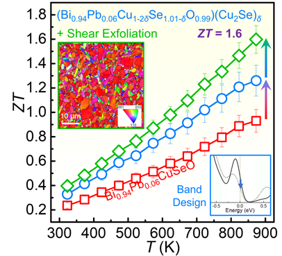 最近,王一峰教授课题组与南昆士兰大学陈志刚课题组在优化层状材料BiCuSeO热电性能方面展开合作,采用成分调控与剪切剥离技术相结合,细化了BiCuSeO晶粒,并提升其晶粒排布取向度,使得BiCuSeO在保持较低热导率的同时,大幅提升了电子迁移率,从而实现了BiCuSeO热电性能的突破。相关工作近期发表在Advanced Functional Materials。论文共同一作:顾言、史晓磊;共同通讯:潘林、王一峰、陈志刚。