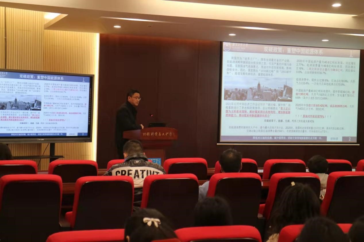 首先,杨晖教授作了主题为“锂硫/硫化硒正极材料的设计及储能机理”的报告,从“双碳”理念出发,介绍了纯电动汽车及储能为主的新能源领域发展现状,并剖析其在节能减排、促进国家可持续发展战略中的支柱作用。最后,介绍了自己所在科研团队的相关研究成果及情况。
