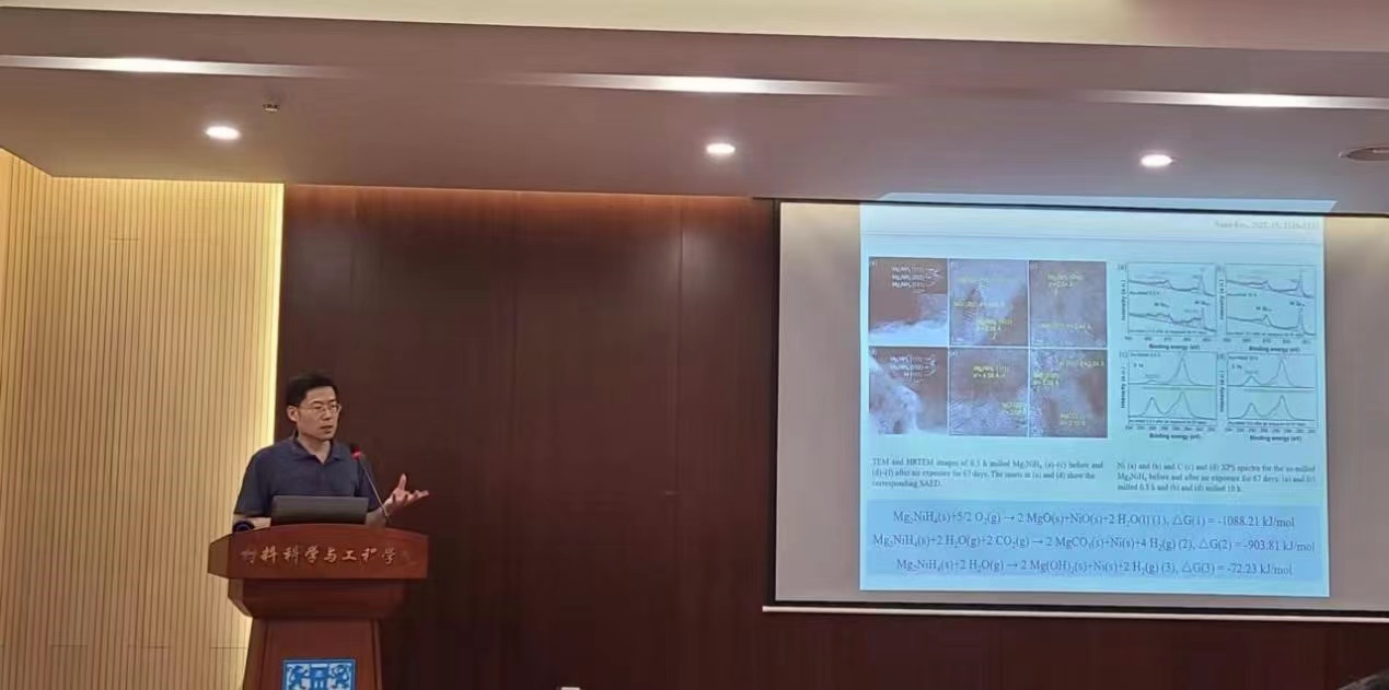 最后,张纪光副教授作了主题为“利用纳米表面工程改善镁镍氢化物储氢性能及其机理探索”的报告。以超薄MgO实现镁镍氢化物微胶囊纳米限域与微水解处理Mg2NiH4为例,深入浅出地介绍了表面纳米化、功能化处理对微纳级镁基材料活性与空气稳定性的影响。