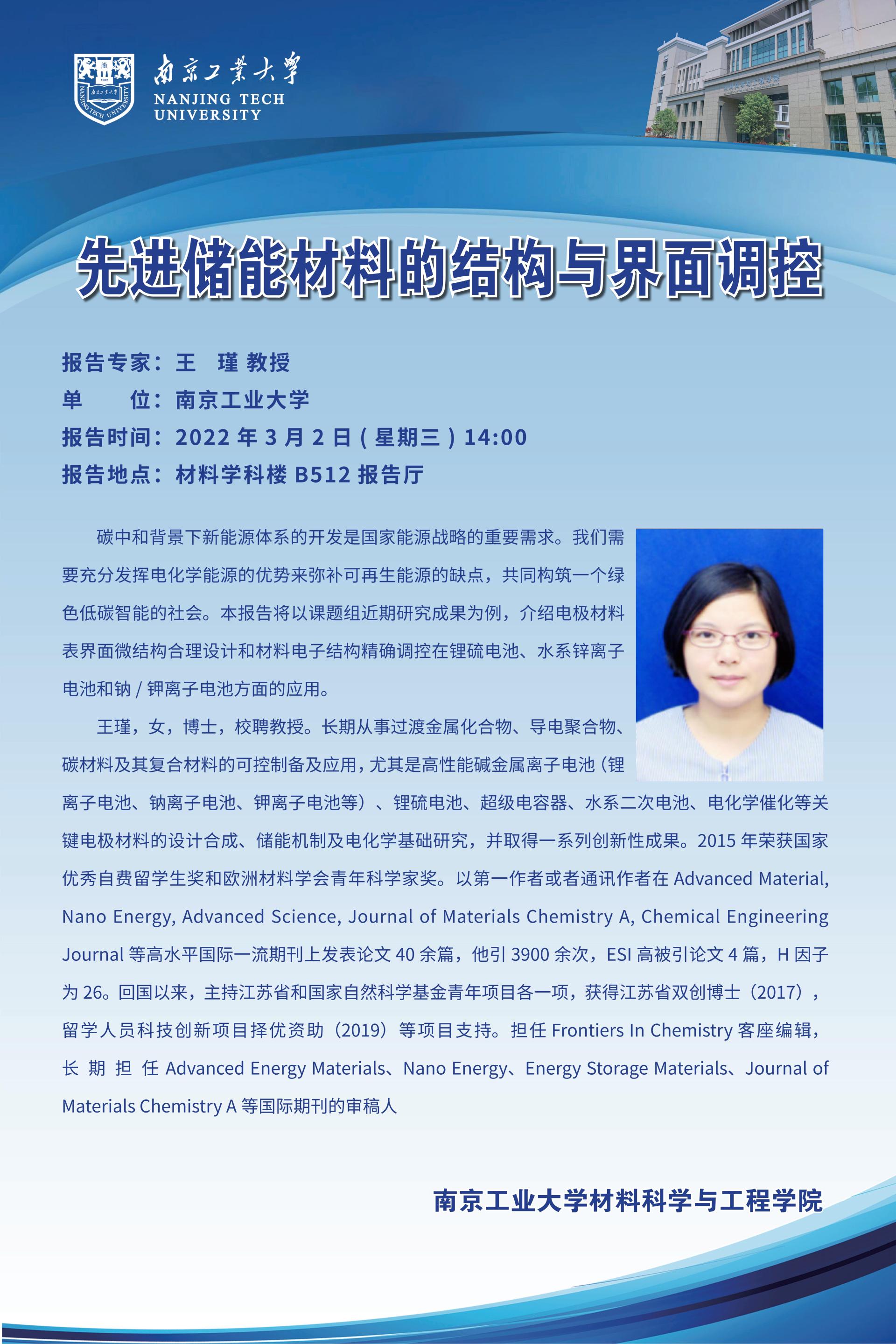 【导师学术报告会】先进储能材料的结构与界面调控