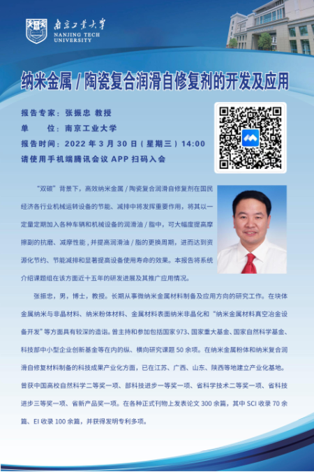 【导师学术报告会】纳米金属/陶瓷复合润滑自修复剂的开发级应用