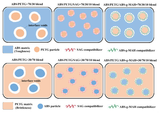 示意图2 SAG和ABS-g-MAH对ABS/PETG共混物的增容效果