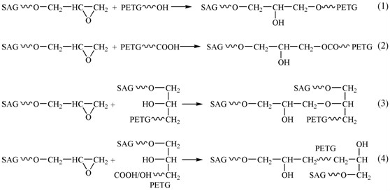 示意图1 SAG和PETG间可能存在的增容和交联反应