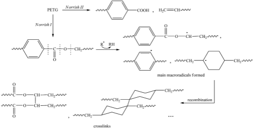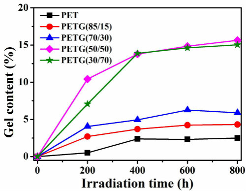 近期,协同创新中心先进高分子膜材料团队张军老师课题组研究生陈婷婷等人报道了不同组成的PETG共聚酯的紫外光降解行为和机理,主要研究共聚酯中不同1,4-环己烷二甲醇(CHDM)含量对PETG紫外光降解行为与机理的影响。通过凝胶含量测定紫外光辐照后PETG的交联程度,以及通过FTIR和XPS研究紫外光辐照前后PETG表面基团的变化来推测不同组成的PETG共聚酯的紫外光降解机理,进一步根据FTIR光谱中产生的新峰来推测PETG的紫外光氧化进程。研究表明,PETG共聚酯的光氧化速率随着CHDM含量的增加而增加,即PETG固有的光稳定性随着CHDM含量的增加而下降。不同组成的PETG共聚酯表现出相似的紫外光降解机理,且CHDM的存在会促进光氧化产物的生成。在辐照过程中形成的交联产物不会被进一步氧化,且CHDM含量越高,交联程度越大。该工作近期发表在RSC Advances上(DOI: 10.1039/C6RA21985C)。