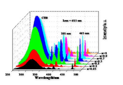 图1 NaLa1-xEuxMgWO6荧光粉的激发光谱图