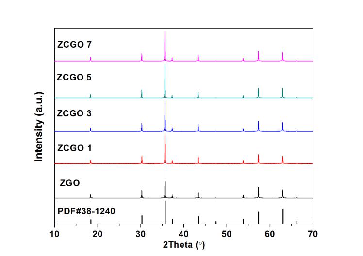近期本中心微波功能材料团队研究了CuO掺杂的镓酸锌微波介质陶瓷,并且研究了CuO掺杂对ZnGa2O4微波介质陶瓷的结构和性能的影响。ZGO基体的与ZCGO的烧结温度和介电常数两个参数没有发生变化,但是0.7%CuO-ZnGa2O4的品质因数提高了12.8%,频率温度稳定系数提高了14.2%。CuO 进入ZnGa2O4晶格后衍射峰向低角度移动,说明Cu2+进入到了32(d)的位置,也就是在ZnGa2O4的正尖晶石结构中引入了反尖晶石结构。GSAS精修结果也证实了这一结果。