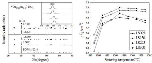 近期协同创新中心微波功能材料团队周洪庆老师课题组研究生孙庆磊等人报道了双元氧化物助剂,可以降低ZrSnTiO4微波介质陶瓷烧结温度,并且不影响陶瓷的介电性能。
